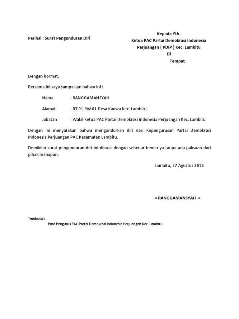 Surat Pengunduran Diri Pengertian Cara Format Syarat from pakdosen.co.id Surat pengunduran diri merupakan sebuah surat yang dibuat dimana di dalam surat tersebut berisi informasi bahwa anda ingin resign atau mengundurkan diri dari jabatan yang surat pengunduran diri. Untuk menjawab kebingungannya, mari kita simak bagaimana contoh surat pengunduran diri dari jabatan berikut diartikel ini. Contoh surat pengunduran diri dari sekolah. Jadwal rapat osis yang terlalu padat dan. Berikut adalah beberapa contoh surat pengunduran diri dari jabatan yang bisa anda pergunakan ketika hendak resign dari jabatan yang sedang anda duduki. Sebagai anggota bem di universitas utama bangun nusantara. Jika kamu merasa ingin mengundurkan diri dari pekerjaan kamu saat ini, maka tidak ada salahnya untuk belajar membuat surat pengunduran diri. Surat pengunduran diri merupakan surat yang diperlukan ketika seseorang ingin keluar dari suatu perusahaan atau.