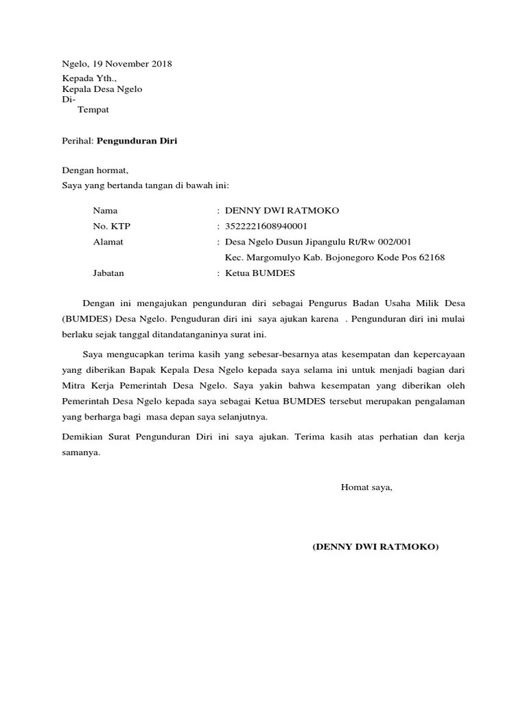 Contoh Surat Pengunduran Diri Dari Jabatan Ketua Bumdes / Surat Pengunduran Diri Organisasi Doc Ilmusosial Id - Nah, untuk melanjutkan bagaimana sistem ketika anda keluar dari pekerjaan?. Untuk memudahkan anda dalam pembuatan surat pengunduran diri, artikel ini akan memberikan contoh surat pengunduran diri. Download kumpulan contoh lengkap mengenai contoh surat pengunduran diri bendahara bumdes secara gratis disini termasuk contoh surat lamaran kerja hotel bagian receptionist, contoh surat lamaran kerja formal tulis tangan, contoh surat lamaran kerja honorer di kantor bupati, dan masih. Memang tidak semua orang dapat bekerja lama di suatu jabatan. Berniat untuk menyampaikan pengunduran diri saya dari jabatan manajer proyek terhitung sejak tanggal 10 juni 2018. Cara membuat surat pengunduran diri yang baik dan benar.