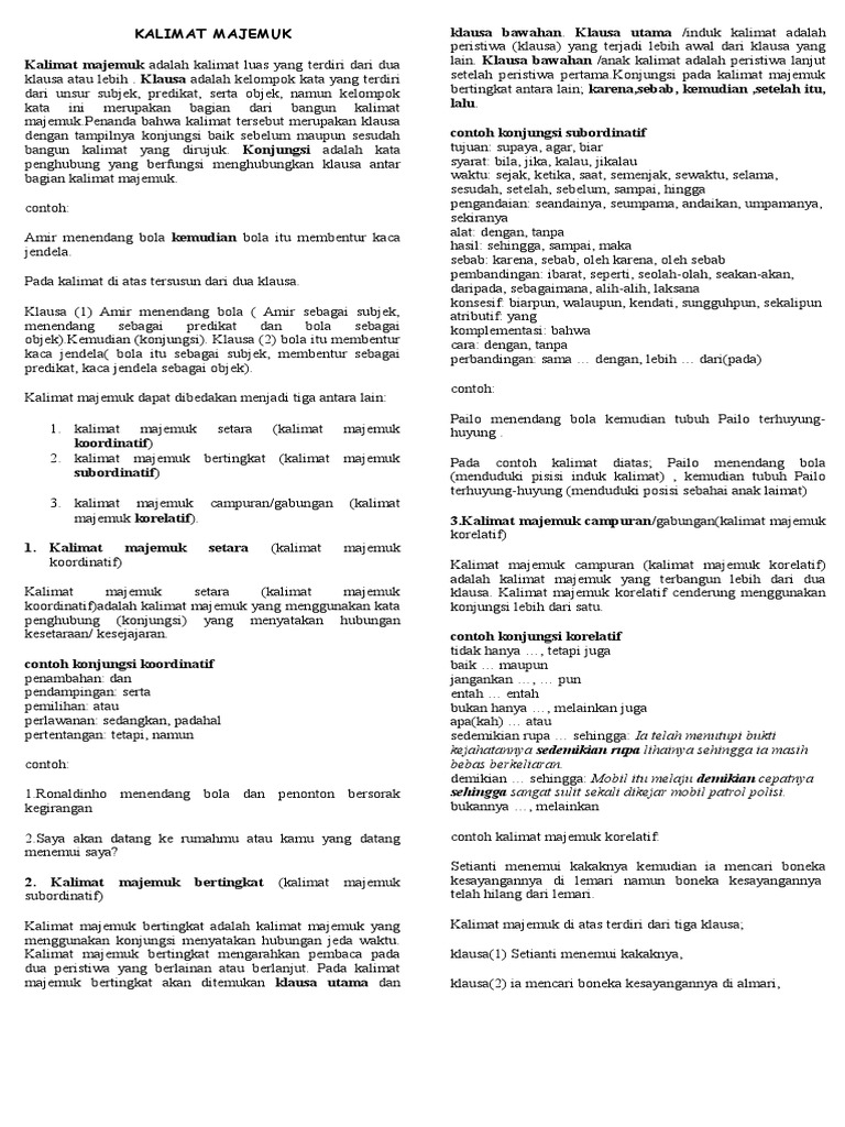 Materi ini tergolong materi yang cukup rumit, karena ada banyak sekali jenis dari kalimat majemuk.
